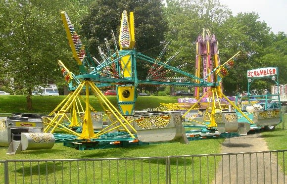 Richard Harris of Georgia invented the first scrambler in 1938. He made and sold 3 before being granted a U.S patent for the design in 1941. It was then licensed by the Eli Bridge Company based in Illinois, but before making any scramblers, W.E.Sullivan (owner of Eli Bridge) made Ferris Wheels after riding the Ferris Wheel at the Chicago's World’s Columbian Exposition in 1893, it wasn’t until late 1953 that he’d completed his first scrambler and by the end of 1954 had made and sold 5 rides. Its major showing was in 1955 at Florida State Fair, where it grossed $1,700 (at 25 cents a ride) in a single day and interested many additional buyers. Scramblers are still extremely popular in America and are found in many theme parks.