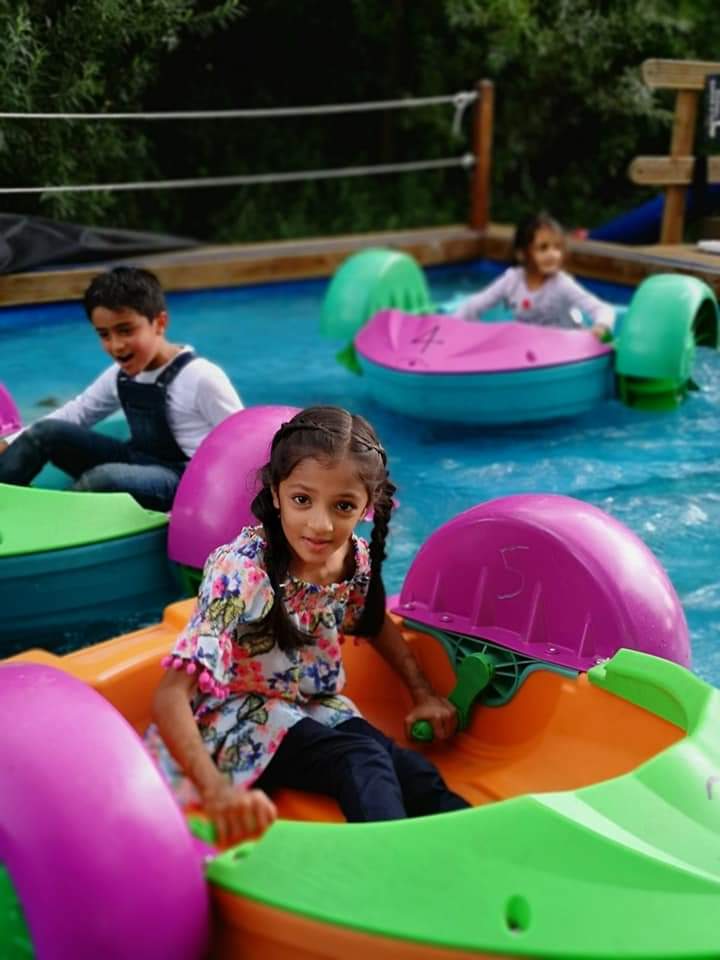 Children love being the captain of their own ship and quickly learn to navigate and maneuver the paddle boats, spinning and racing around in a shallow pool surrounded by an inflatable surround is delightful fun and even better when the sun is out. Parents will enjoy watching their kids take to it like a duck to water with a few proud faced snaps of their adventure to take away.