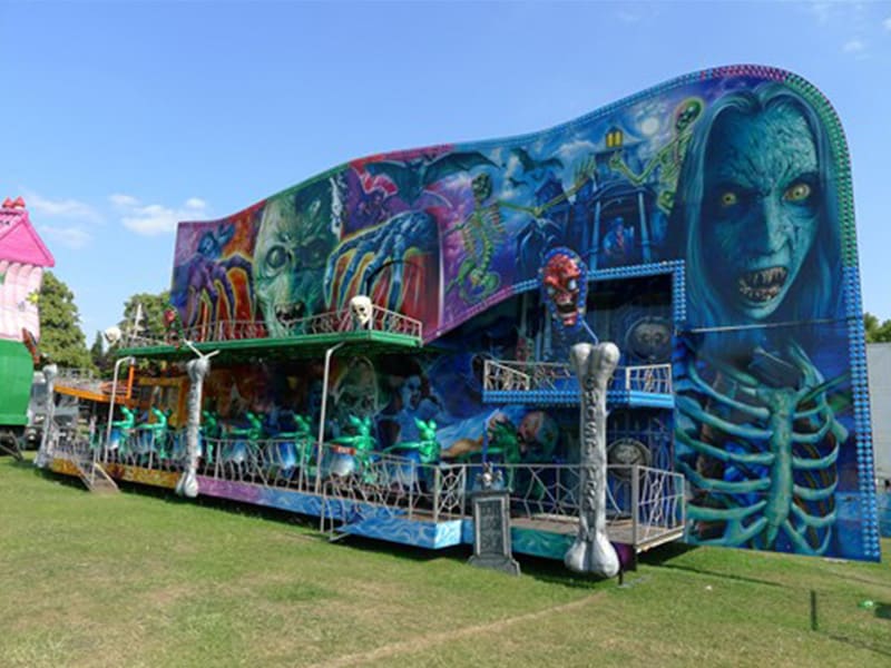 Whether it be the traditional single deck or double decked Ghost Train, there are plenty of frights to be had on the Ghost Train Ride. Hop into the spooky carriage and slowly follow the track around the spooky twists and turns, listen to the screams ahead whilst awaiting your fate and be prepared for the unexpected.